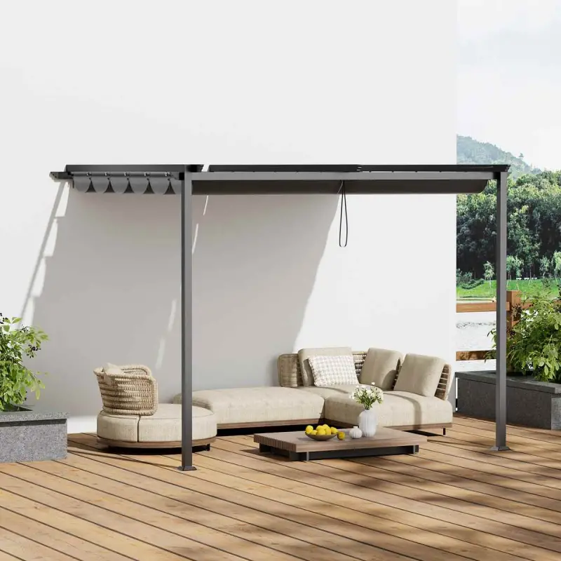 We have been looking around for a while, and we really love this Garden Sanctuary 10 X 13ft Outdoor Pergola Outdoor Lean To Pergola With Canopy And Flat Roof - Dark Grey Grey.