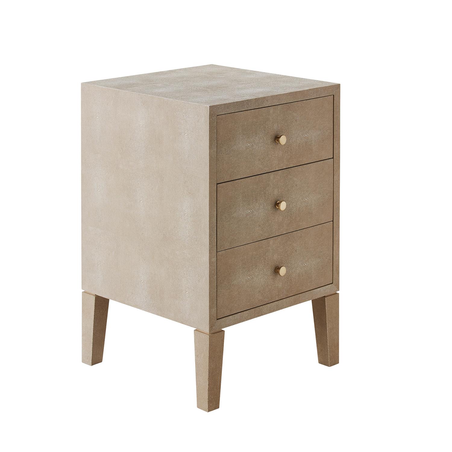 Georgia slim bedside table with three drawers in cream faux-shagreen and elegant brass handles. Georgia Bedside Table Cream, Bedside Table - Andrew Martin