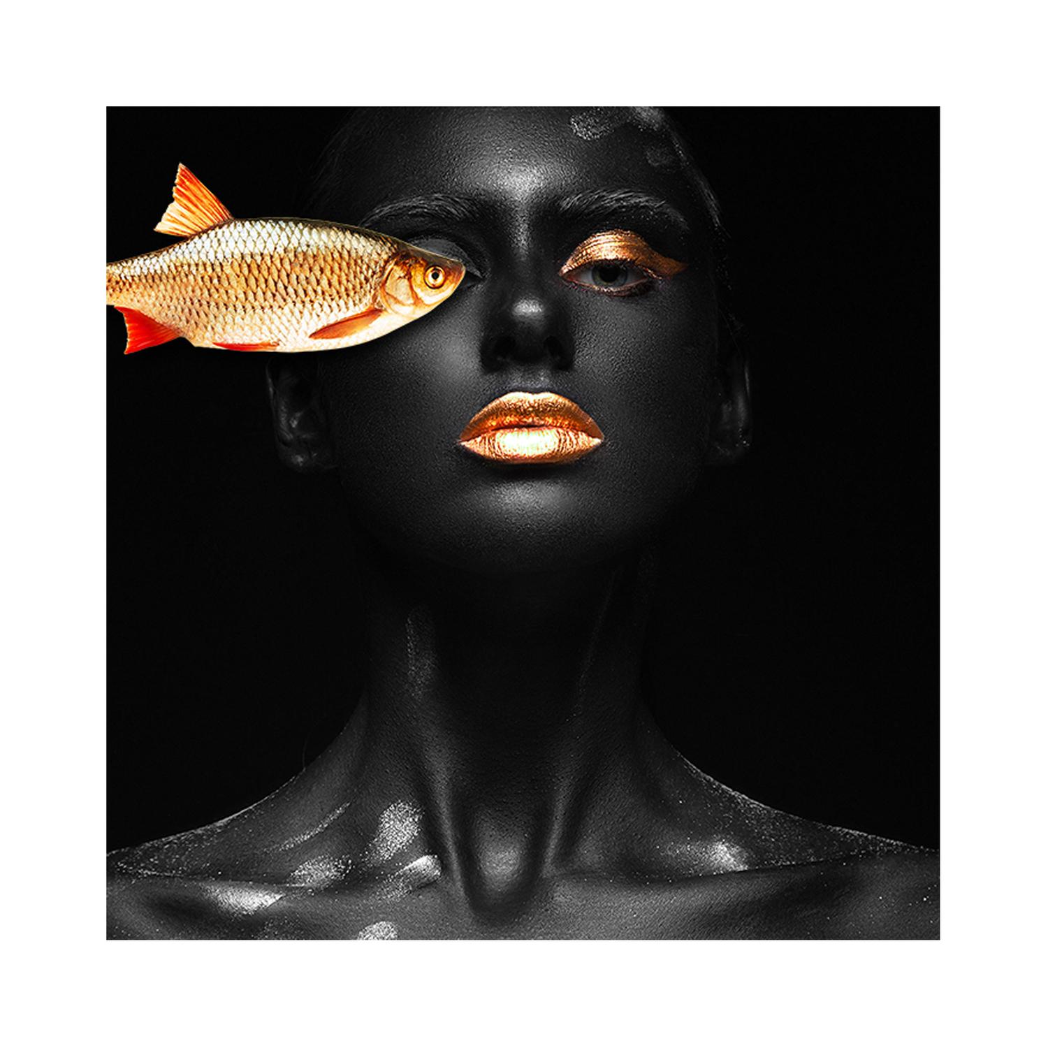 This dazzling artwork, in the striking contrast of gold and black, has a surreal quality as a goldfish obscures a women's eye. Printed on plexiglass this is a limited-edition piece by artist Gaby, curated in collaboration with our partners Cobra Art. Golden Eye, Plexiglass Artwork, 100cm x 100cm, Black/Gold - Andrew Martin