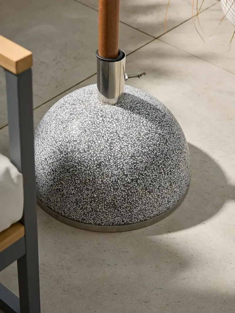 Solid, sculptural, and designed to last, our Granite Dome Parasol Stand offers a refined foundation for your outdoor shade. Crafted from natural granite with a polished, speckled finish, it pairs timeless elegance with exceptional stability.The dome-shaped silhouette not only anchors your parasol securely, but also introduces a contemporary architectural element to your terrace or patio. Finished with a sleek stainless steel collar and tightening screw, it's a piece that blends durability with understated style.