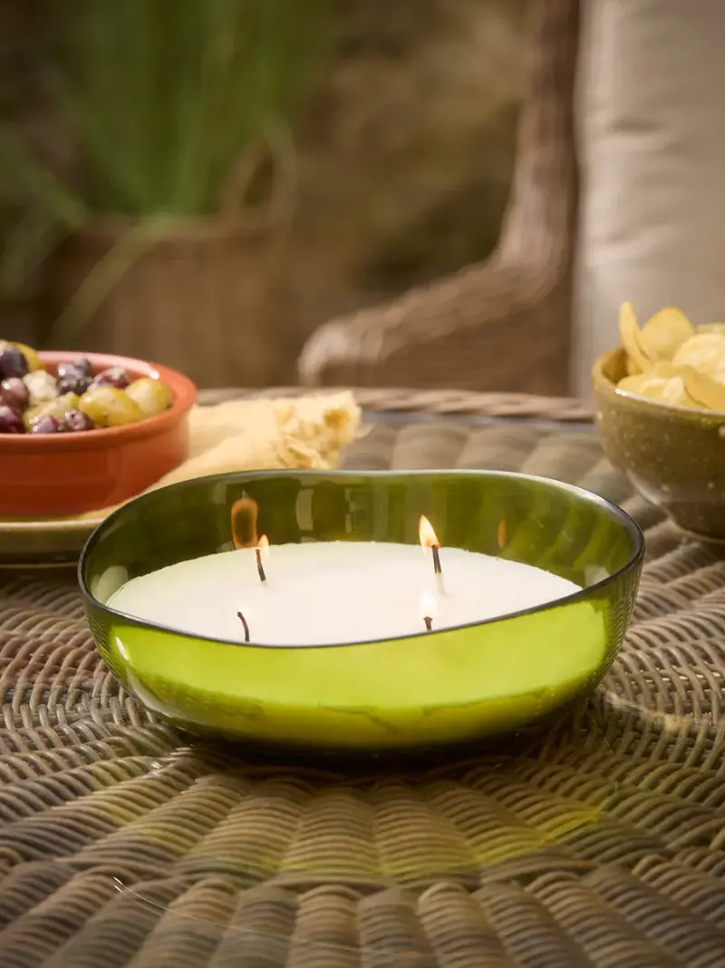 Encased in an earthy green glass, this citronella candle burns beautifully, giving your outdoor space a warm glow whilst keeping those pesky insects away.