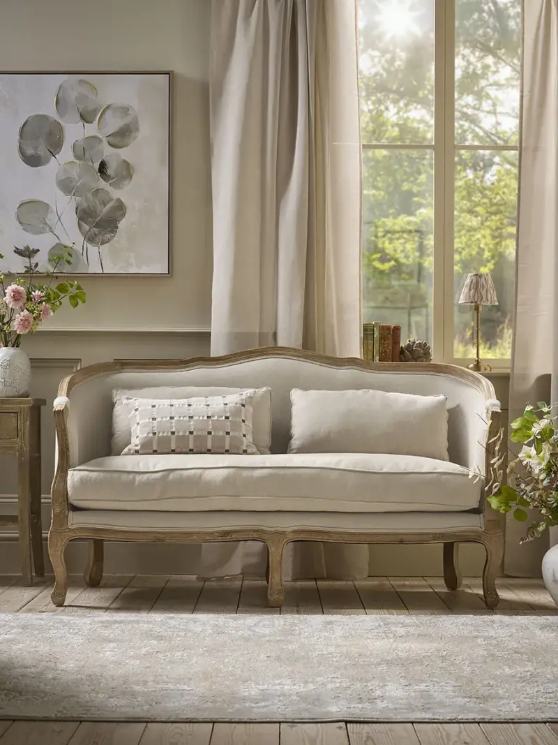 Full of Baroque opulence, adapted for contemporary living, our Hadsund Sofa brings all the elegance of the drawing room in a period drama to your bedroom or living room. With its curving lines and sweeping form, the ornately carved wooden frame, is matched with cabriole legs and smart linen upholstery for a timeless look that will impress in any location. A matching armchair is also available.