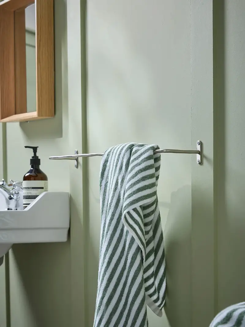 This stainless steel towel rail brings a sleek, contemporary edge to your bathroom while maintaining a timeless appeal. The streamlined bar design is ideal for neatly displaying towels, and its subtly textured, hammered finish adds a refined, artisanal touch. Pair it with the matching toilet paper holder for a coordinated and stylish bathroom update.