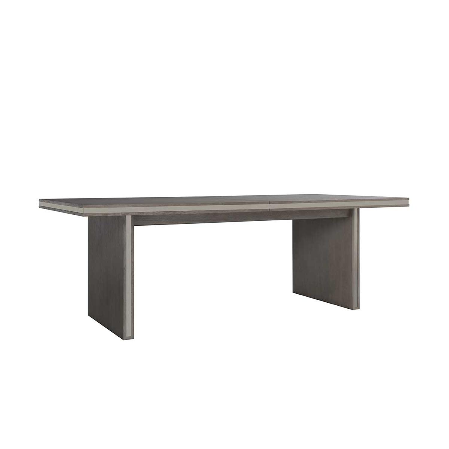 Rectangular extending dining table An elegant yet stylish dining table with a smoked oak finish to display the natural wood graining and a detailed brushed pewter inlays suited to be paired with a range of dining chairs. Hampstead comfortably seats 8 people (with 156cm width between the legs), or up to 12 when fully extended. Measures 326cm wide when fully extended. Hampstead Extendable Dining Table, Extending Dining Table - Andrew Martin
