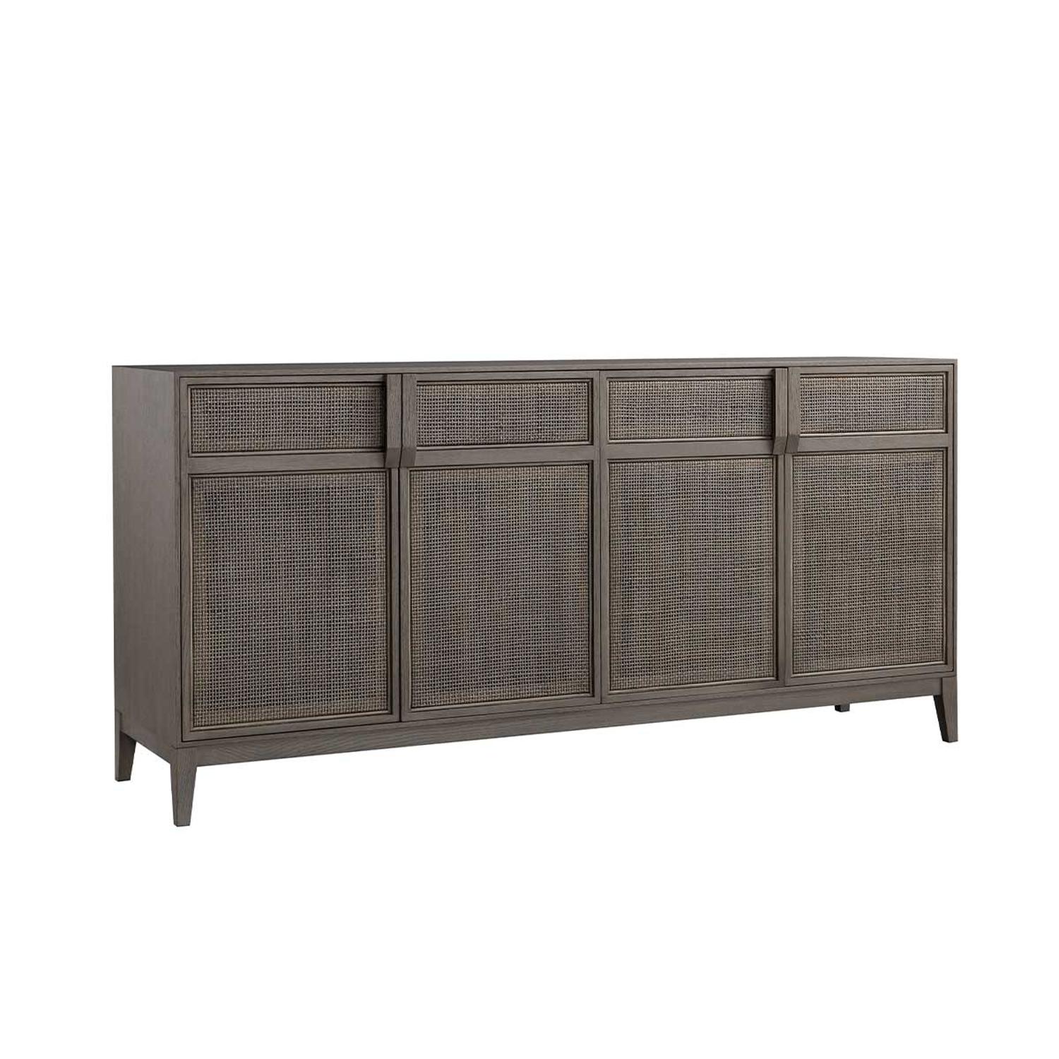 Elegantly crafted with a smoked oak finish this sleek sideboard evokes a relaxed and modern look. The frame is lightly brushed to reveal the natural grain of the wood which fits perfectly with the soft-close rattan doors. Inside you will find two drawers and adjustable shelving. Due to the weight of this product, delivery would be to ground floor only. Hampstead Sideboard, Sideboard - Andrew Martin