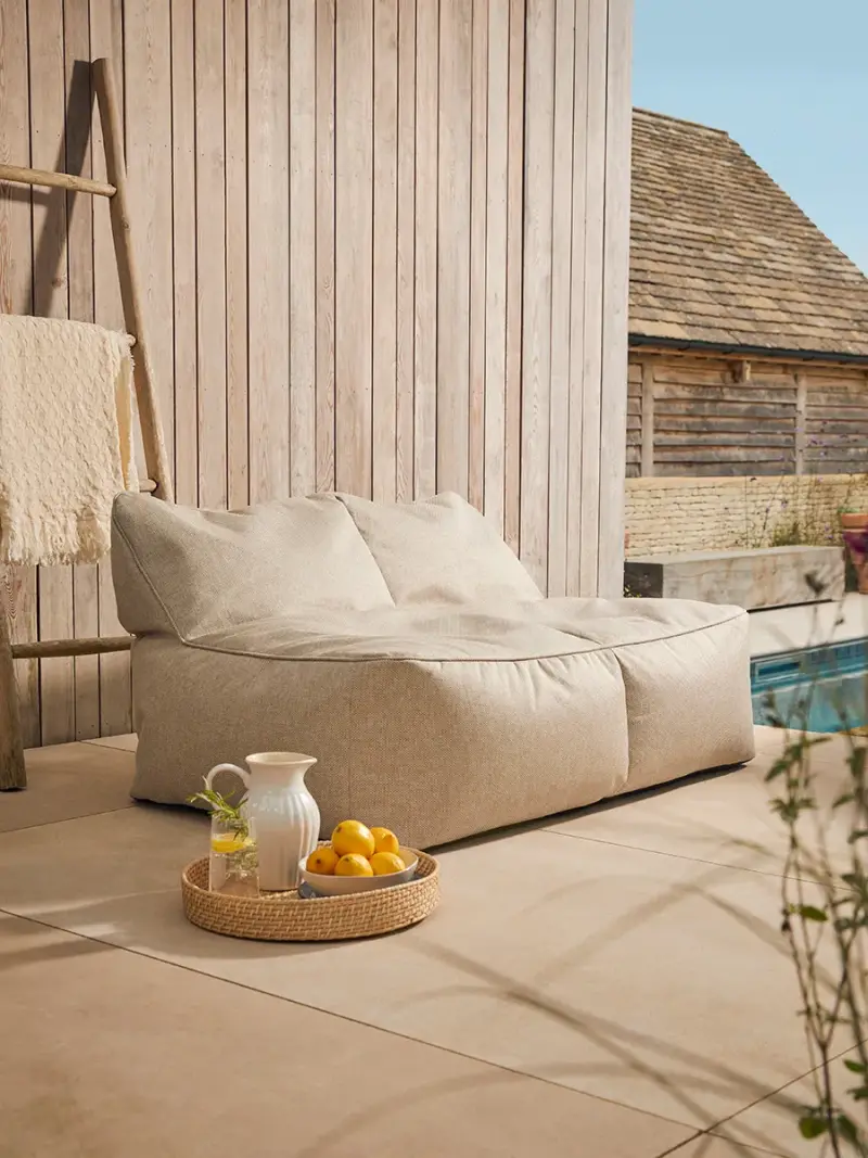 While away the summer days with your friend or partner and cosy up on our Harlington Indoor Outdoor Beanbag Sofa. Designed to cradle your body, sink into the comfort that this beanbag chair provides and place with our Harlington Pouffe for the ultimate garden set-up.