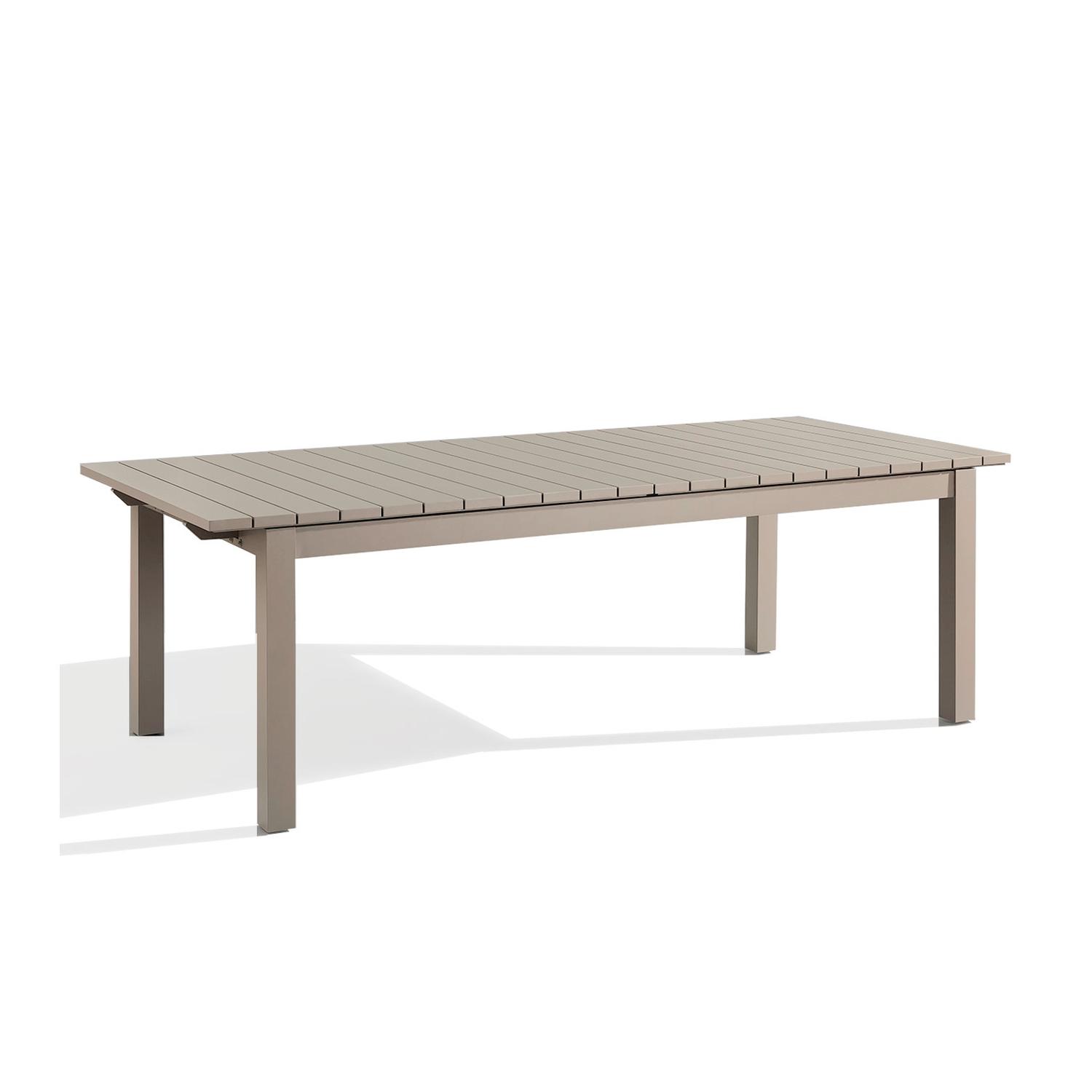 A simple design with a nautical edge, this taupe coloured dining table allows you to easily cater for any number of guests with its practical extendable feature, with a central section that effortlessly retracts into the table frame when not in use. Crafted from an aluminium powder coated frame with a soft taupe finish the slatted design is specifically made for easy draining and practical outdoor use. Harlyn Dining Table, Outdoor Extendable Dining Table - Andrew Martin