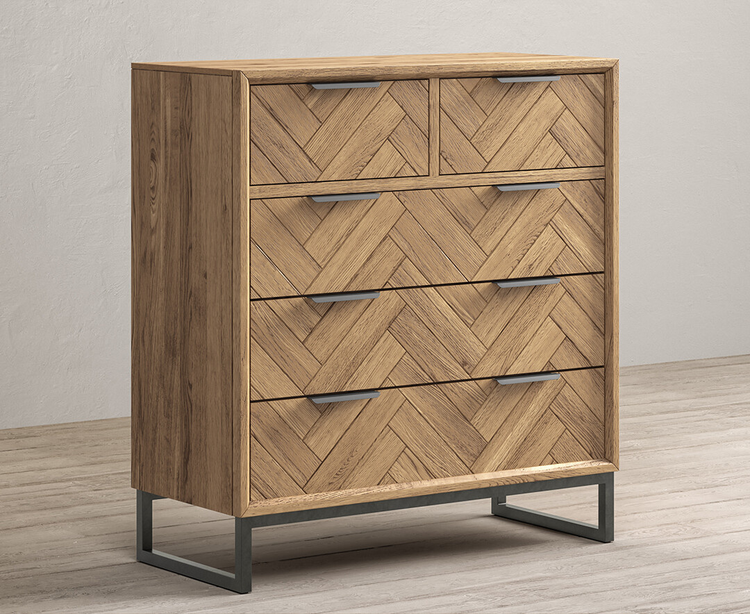 Herringbone Solid Oak 2 Over 3 Chest Of Drawers