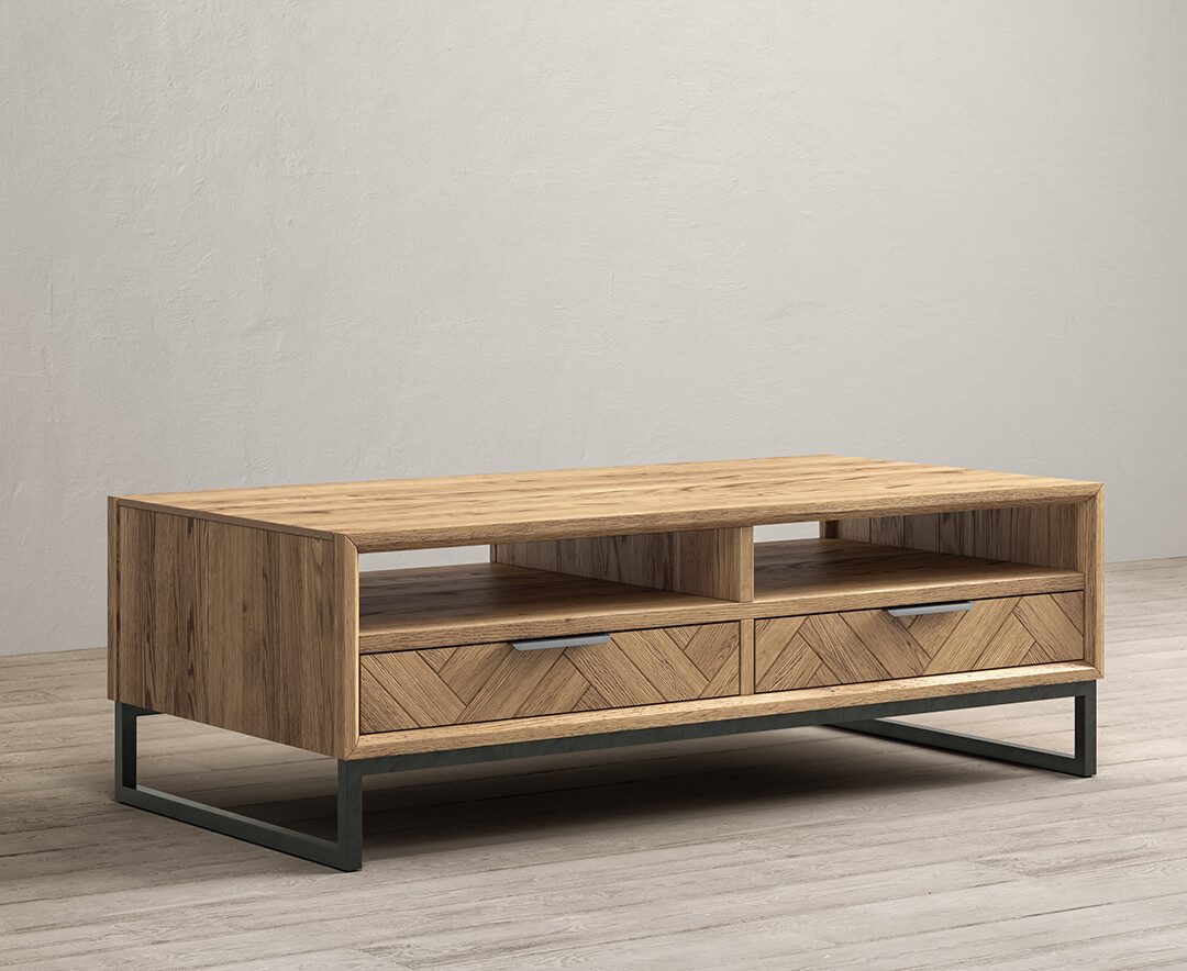 Herringbone Solid Oak 4 Drawer Coffee Table