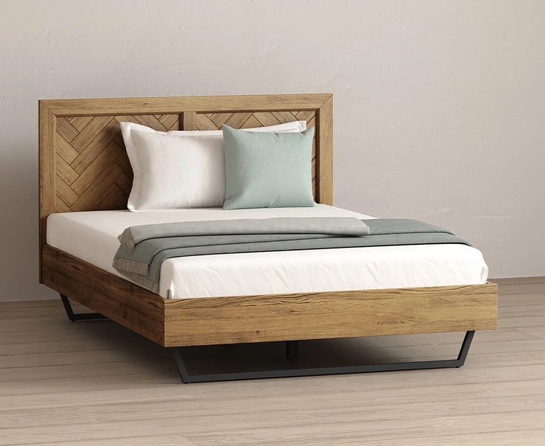 Herringbone Solid Oak Double Bed