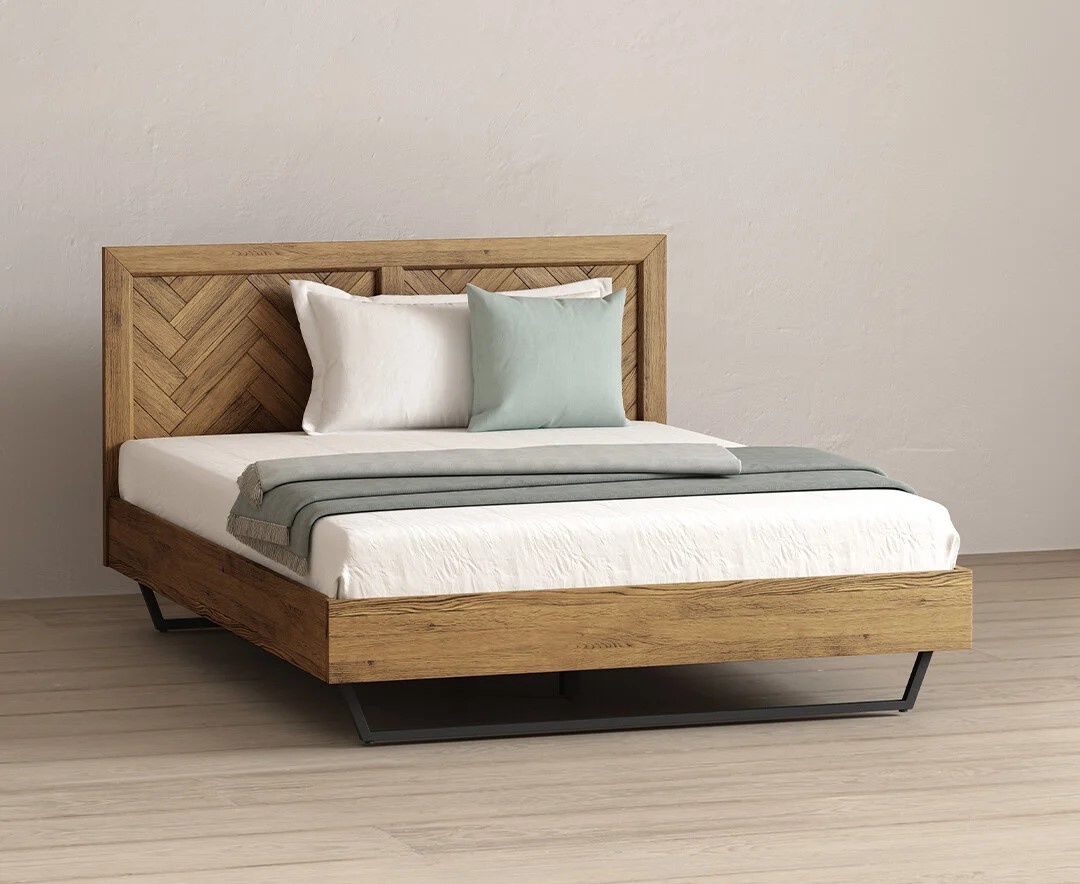 Herringbone Solid Oak King Size Bed