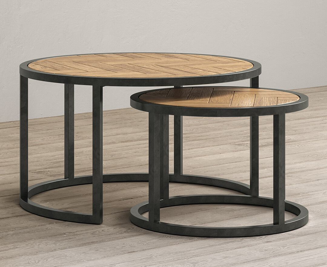 We are really chuffed that there is currently a 14% discount off on Herringbone Solid Oak Round Nest Of Tables!