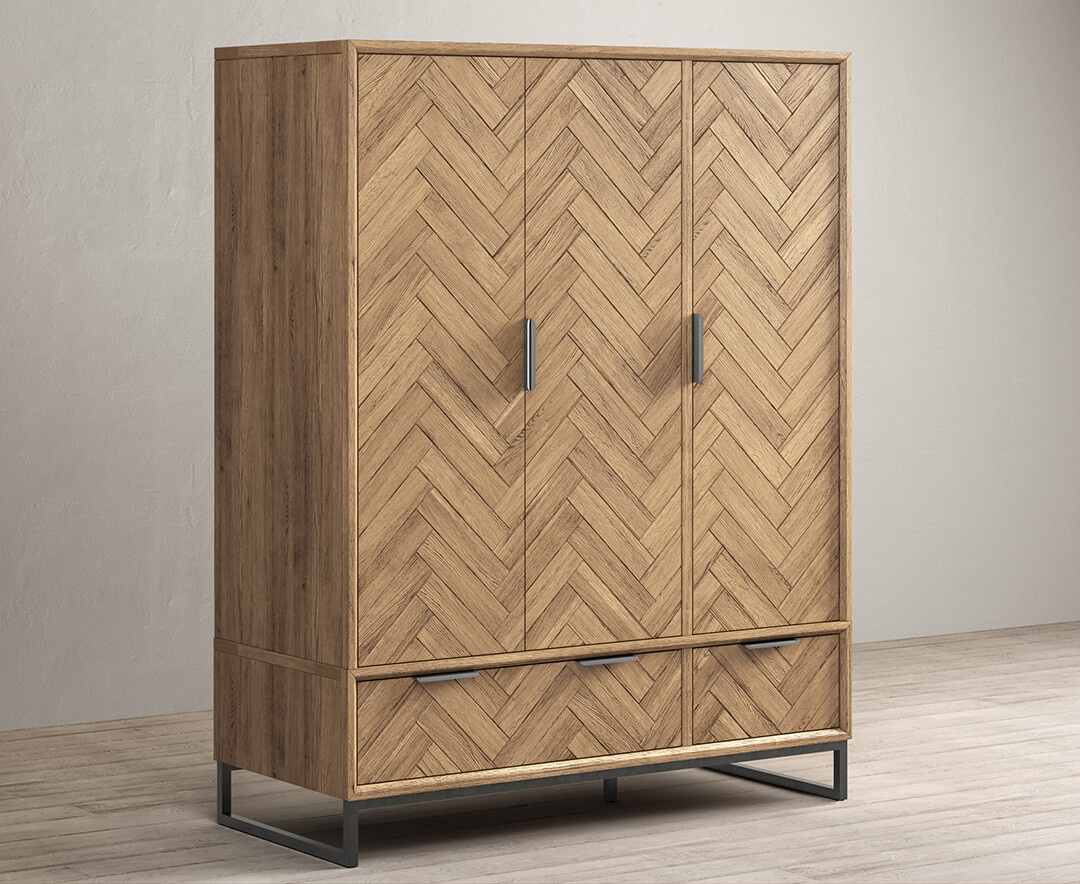 Herringbone Solid Oak Triple Wardrobe