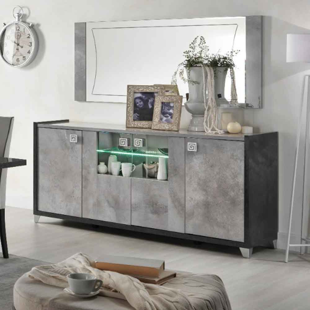 Look no further! Heston High Gloss Marble Effect Sideboard With 4 Doors In Grey And Led is a must have for your home!