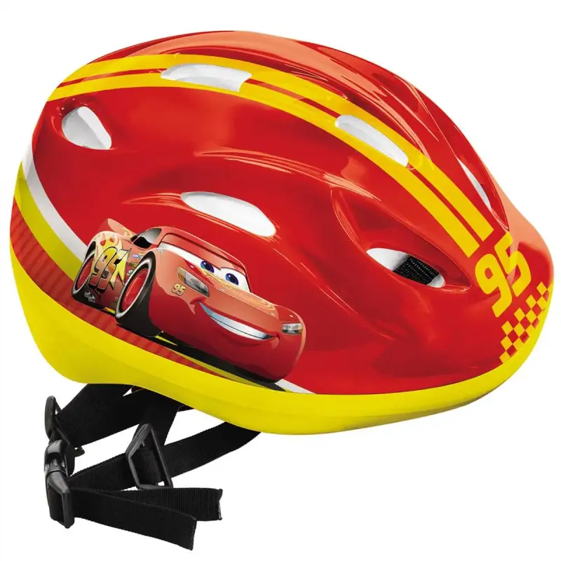 Get ready to race safely with the Disney Cars Kids Helmet, a must-have childrens helmet featuring Lightning McQueen from the popular Cars franchise. Designed for cycling, scootering, and skating, this kids helmet combines trusted protection with bold, high-speed style that young fans will love. Built for everyday adventures, this Cars helmet for kids features a lightweight yet durable outer shell with foam padding help protect during everyday activities. The adjustable strap with quick release clip ensure a secure and comfortable fit, while the 9 air vents promote airflow to keep children cool during active play. Suited to fit head size 52 56 cm. Features: Official Disney Cars (Lightning McQueen) helmet design Lightweight and durable Adjustable straps with a quick release clip for a secure and comfortable fit With 9 air vents for improved airflow Suitable for cycling, skating, and scootering Suited to fit head size 52 56 cm Specifications: Dimensions: H:13.5 x W:20.5 x D:25 cm Weight: 0.2 kg Colour: Multi Material: Plastic And Foam Model Number: 28103