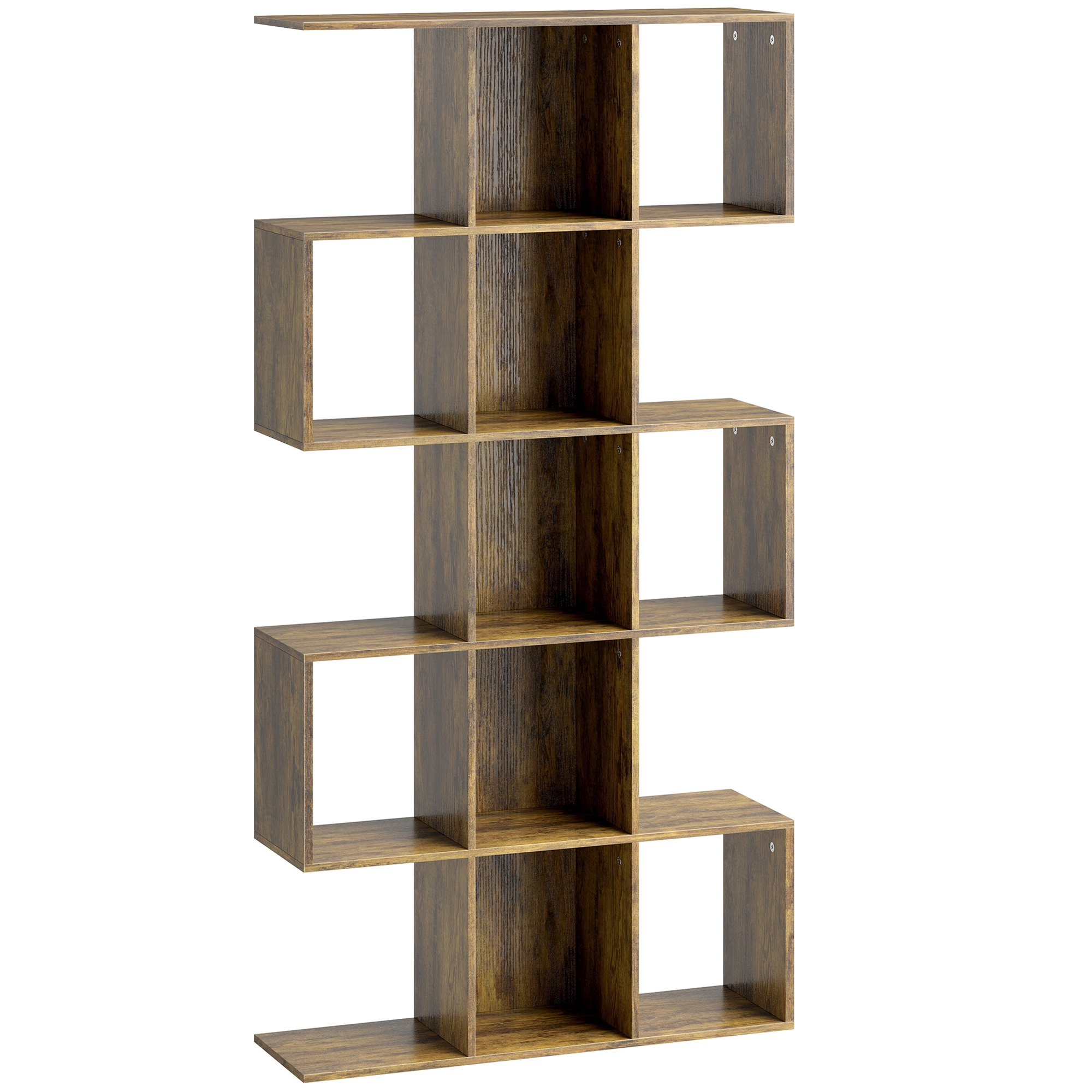 Homcom 5-tier Bookshelf S Shaped Geometric Bookcase With 15 Compartments Rustic Brown