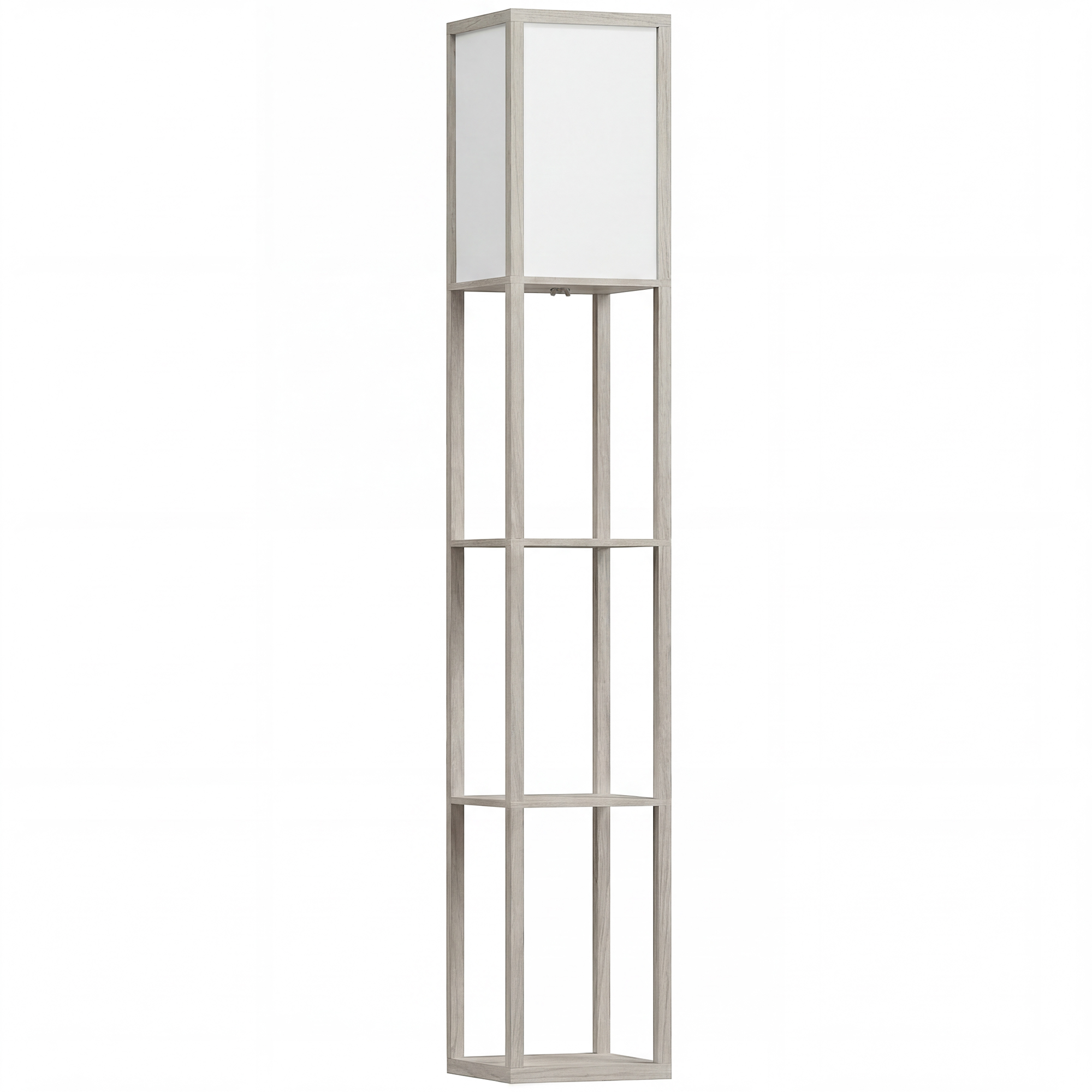 Bring light, beauty and storage into your living room and beyond, from this HOMCOM floor lamp. It is formed of three shelves and a top light: the spacious shelves allow room for storage and display of your decorations. The top lamp is protected by a white shade to omit a welcoming ambience in your home. Controlled by an easy-to-use foot switch, so you can turn it on and off easily. The structure is tough and durable, with a smooth and protective melamine coating to finish.