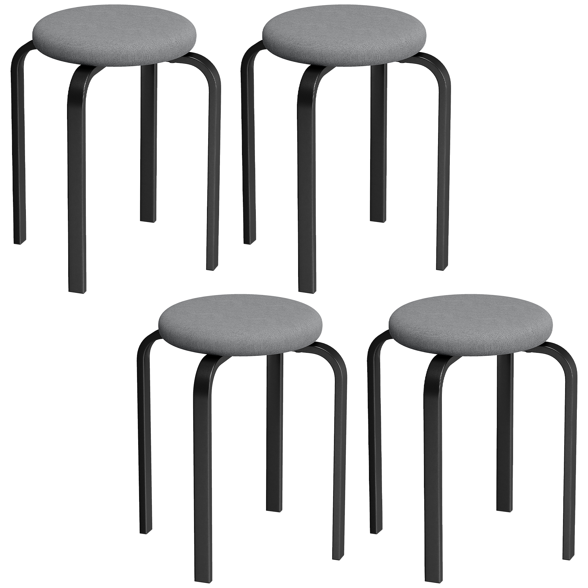 Homcom Stackable Stools Modern Cushioned Round Backless Stools Set Of 4 Kitchen Dining Room Dark Grey