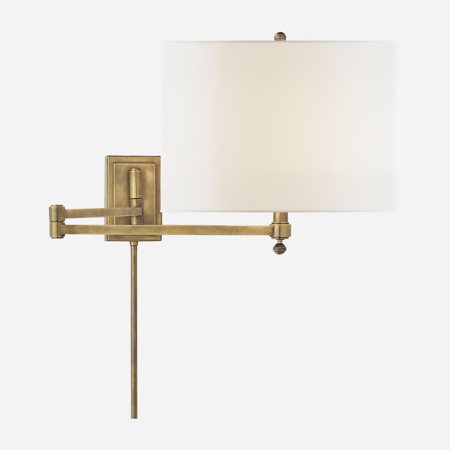Smart wall light with a swing arm in hand-rubbed antique brass and an oversized natural paper shade, oozing American style. Crafted by iconic designer Thomas O’Brien. Hudson Wall Light Brass, Wall Light, Hand-Rubbed Antique Brass - Andrew Martin