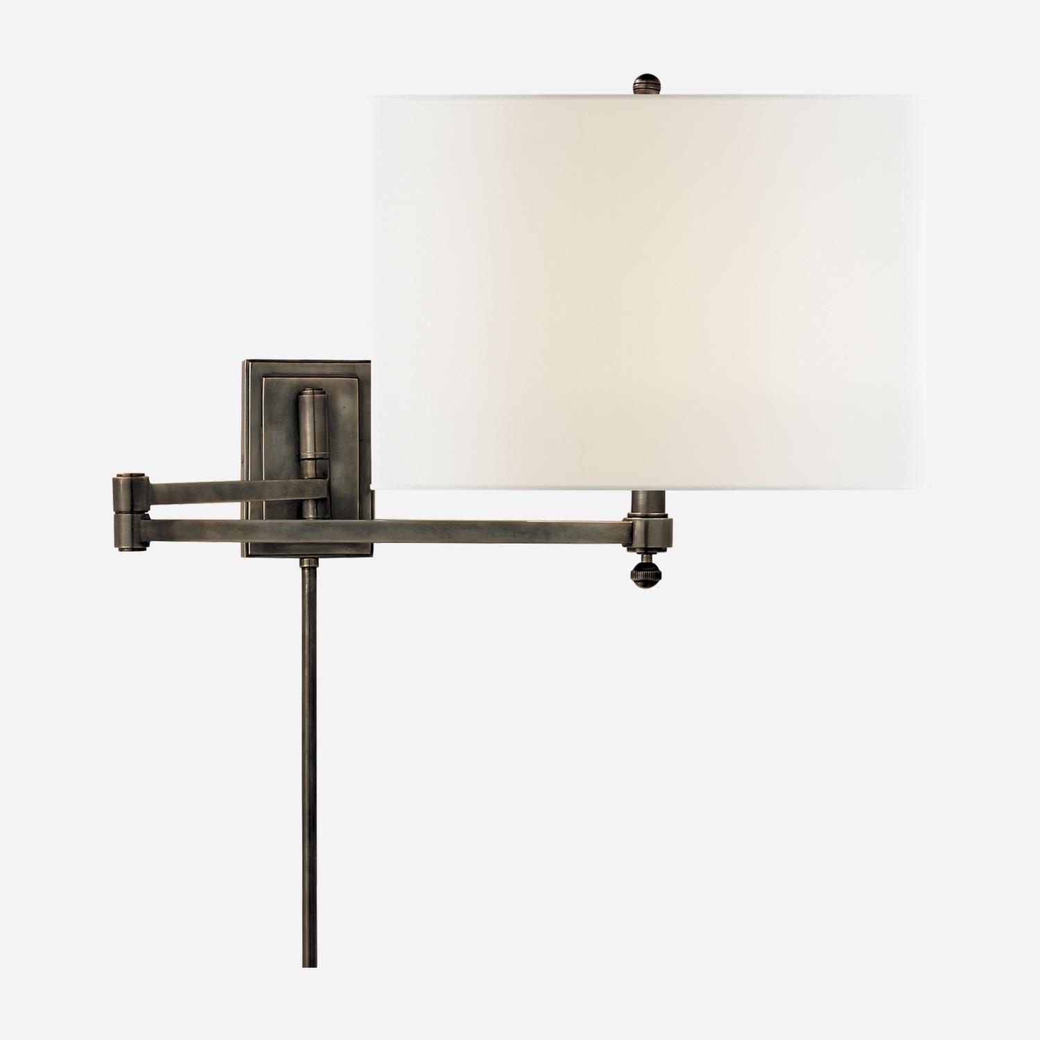 Smart wall light with a swing arm in bronze and an oversized natural paper shade, oozing American style. Crafted by iconic designer Thomas O’Brien. Hudson Wall Light Bronze, Wall Light - Andrew Martin