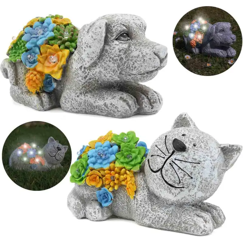 I Love Fancy Dress Pack Of 1 Solar Cat Dog Garden Ornaments Accessories Grey