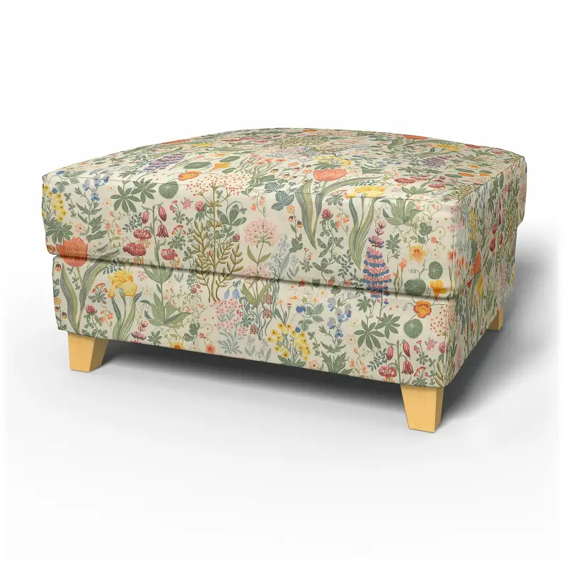 Ikea - Backa Footstool Cover Blomsterhav Light Bemz X Bor Stapeter Collection - Bemz