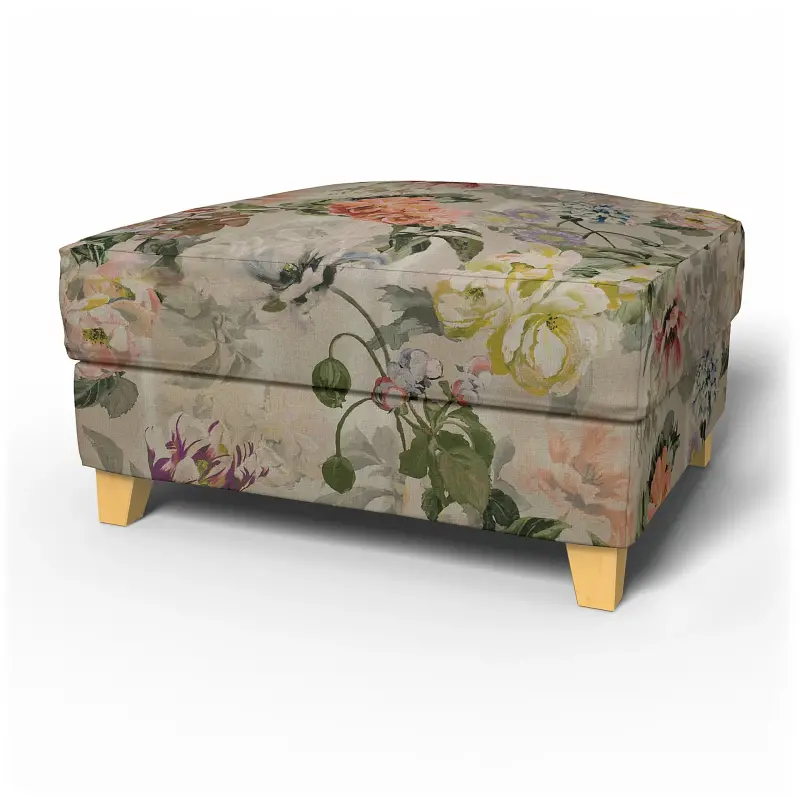 Ikea - Backa Footstool Cover Delft Flower - Tuberose Linen - Bemz