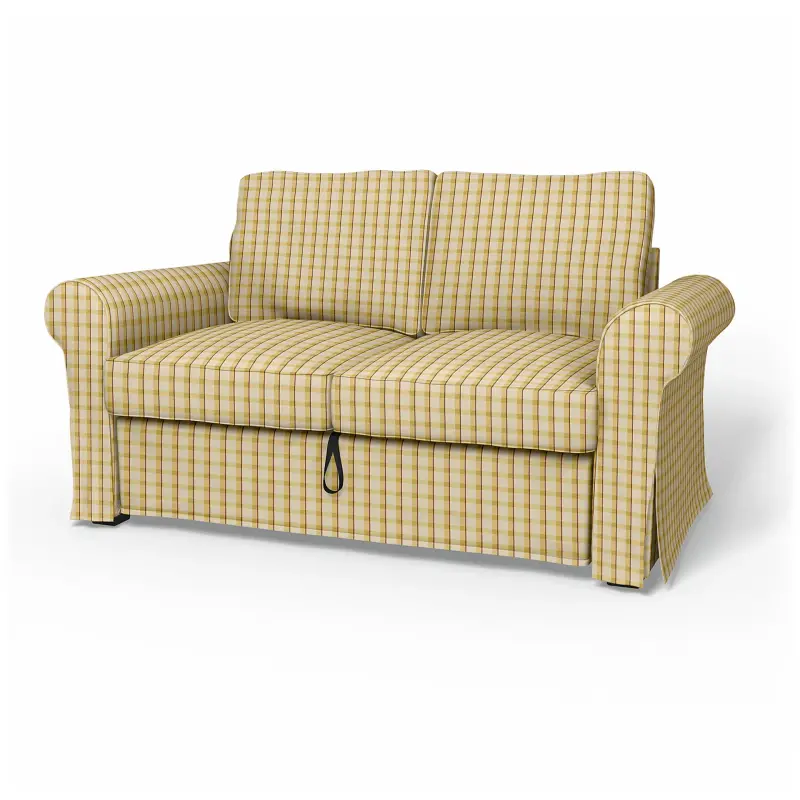 Ikea - Backabro 2 Seater Sofa Bed Cover Picnic Check Sun Yellow Linen - Bemz