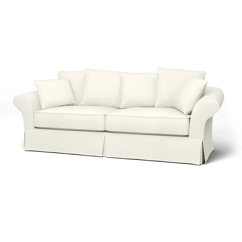 This cover includes 9 pieces: 1 frame cover, 2 seat cushion covers and 5 decorative cushion covers. It comes with piping. This cover will only fit the discontinued IKEA Backamo 3 seater sofa model. Measures 188cm at the back just above the legs. Note for North American customers: the Bemz Backamo cover has hard, "hook-sided" velcro (European standard), and attaches only to soft, "loop-sided" velcro.