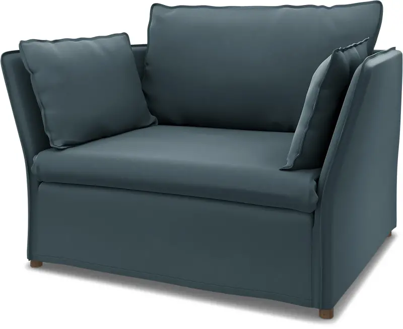 This Bemz cover fits IKEA Backsälen 1,5 seater sofa (115 cm long) and it includes 5 pieces: 1 frame cover, 1 seat cushion cover, 1 back cushion cover & 2 decorative cushion covers. The IKEA Backsälen cover is easy to put on, the frame cover is slided over the armrest and backrest of the sofa, to be pulled down över the seating area. No assembly required. Fitting Instructions: Remove the original IKEA slipcover before fitting the Bemz cover.