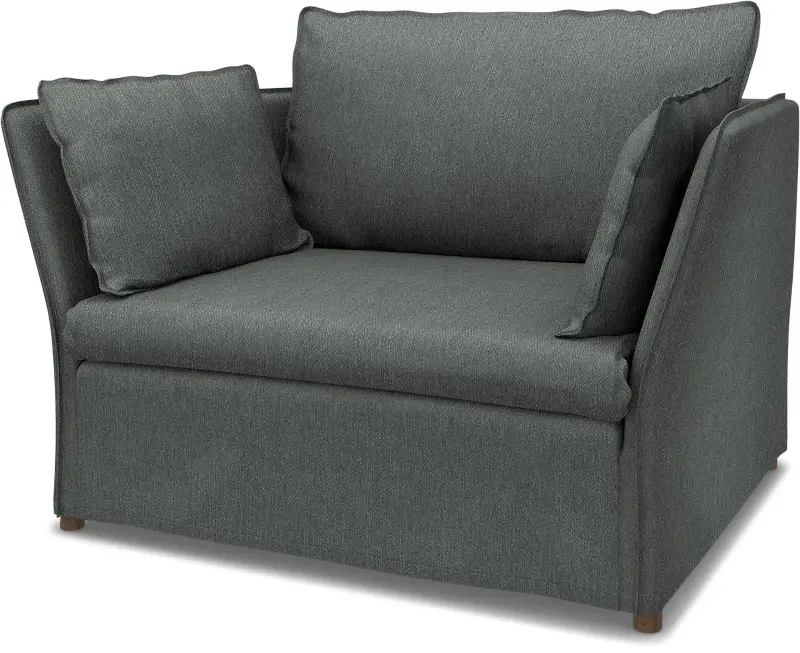 This Bemz cover fits IKEA Backsälen 1,5 seater sofa (115 cm long) and it includes 5 pieces: 1 frame cover, 1 seat cushion cover, 1 back cushion cover & 2 decorative cushion covers. The IKEA Backsälen cover is easy to put on, the frame cover is slided over the armrest and backrest of the sofa, to be pulled down över the seating area. No assembly required. Fitting Instructions: Remove the original IKEA slipcover before fitting the Bemz cover.