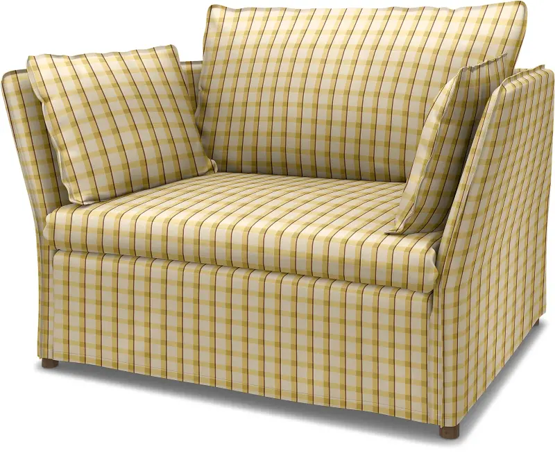 Ikea - Backs Len 1 5 Seater Armchair Cover Picnic Check Sun Yellow Linen - Bemz