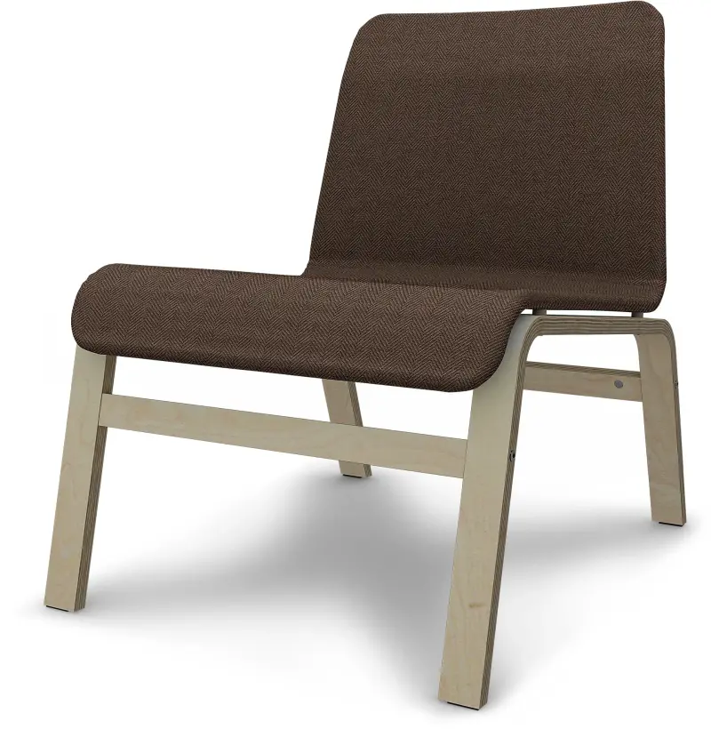 This Bemz cover fits the IKEA Nolmyra lounge chair. It’s easy to put on and padded for extra comfort. Some assembly required: unscrew the seat from the legs. Fitting instructions: remove the original IKEA cover before sliding the Bemz cover over the seat. Close the zipper and be sure to align the cover holes with the seat’s screw holes so you can reattach the legs.