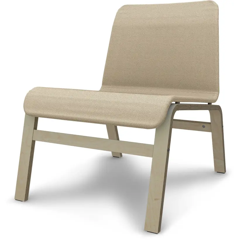 This Bemz cover fits the IKEA Nolmyra lounge chair. It’s easy to put on and padded for extra comfort. Some assembly required: unscrew the seat from the legs. Fitting instructions: remove the original IKEA cover before sliding the Bemz cover over the seat. Close the zipper and be sure to align the cover holes with the seat’s screw holes so you can reattach the legs.