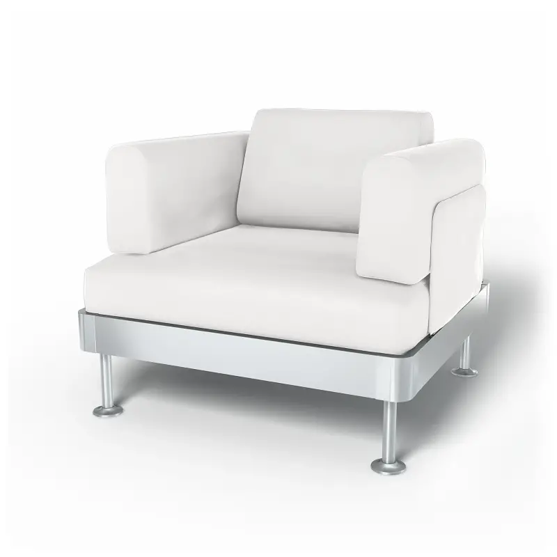This cover includes 7 pieces: 1 seat cushion cover, 1 backrest cover, 1 back cushion cover, 2 armrest covers and 2 armrest cushion covers. Only fits the IKEA Delaktig 1 seater with armrests. Assembly required.