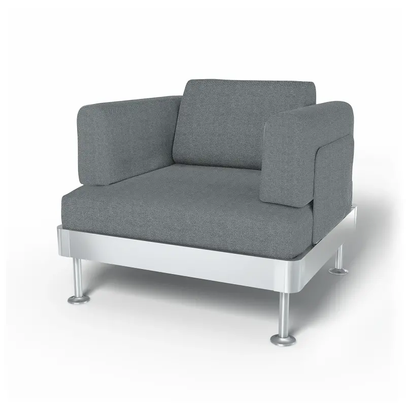 This cover includes 7 pieces: 1 seat cushion cover, 1 backrest cover, 1 back cushion cover, 2 armrest covers and 2 armrest cushion covers. Only fits the IKEA Delaktig 1 seater with armrests. Assembly required.