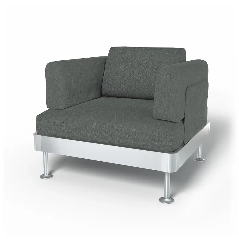 This cover includes 7 pieces: 1 seat cushion cover, 1 backrest cover, 1 back cushion cover, 2 armrest covers and 2 armrest cushion covers. Only fits the IKEA Delaktig 1 seater with armrests. Assembly required.