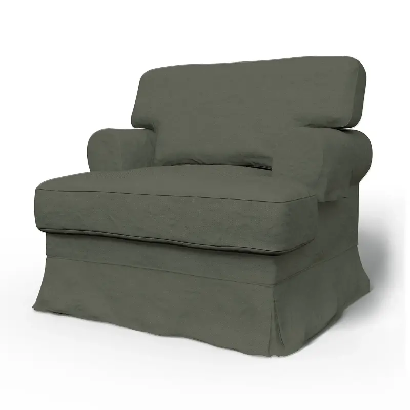 This cover includes 5 pieces: 1 frame cover, 2 armrest covers and 2 cushion covers. Bemz Loose Fit covers are designed to hang looser than our Regular Fit and have a distinctive floor-length drape. It can only be used for the IKEA Ekeskog armchair sold in 2006. The Ekeskog armchair has a width of 60 cm across the backrest. If the measurement is not the same you might have an IKEA Barkaby armchair.
