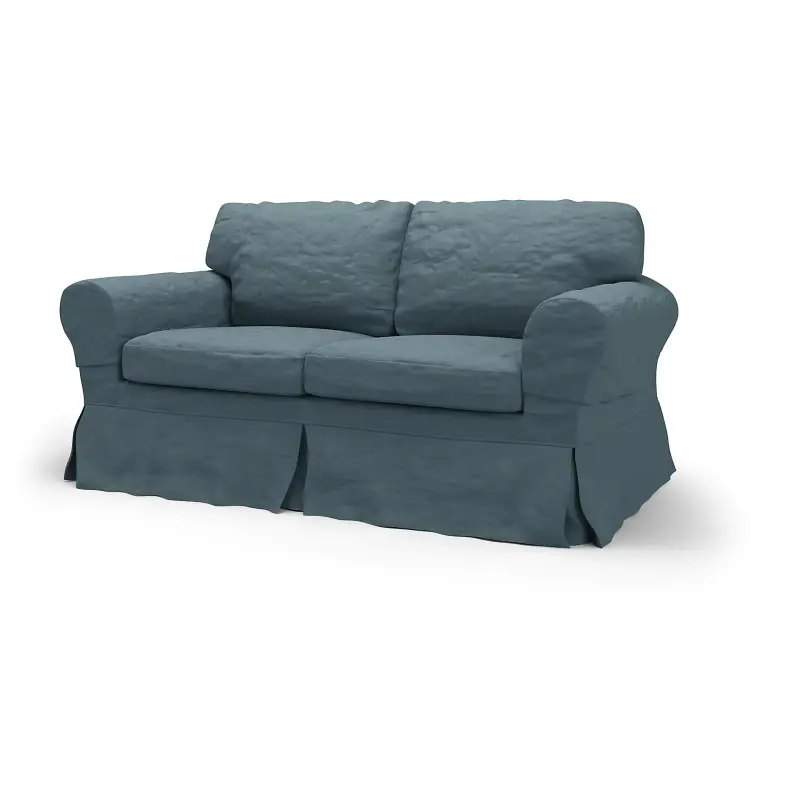 This cover includes 7 pieces: 1 frame cover, 2 seat cushion covers, 2 back cushion covers and 2 extra armrest covers. It can only be used on the Ektorp 2 seater sofa from IKEA. The cushion covers are closed with zippers and are reversible. Bemz Loose Fit covers are designed to hang looser than our Regular Fit and have a distinctive floor-length drape.