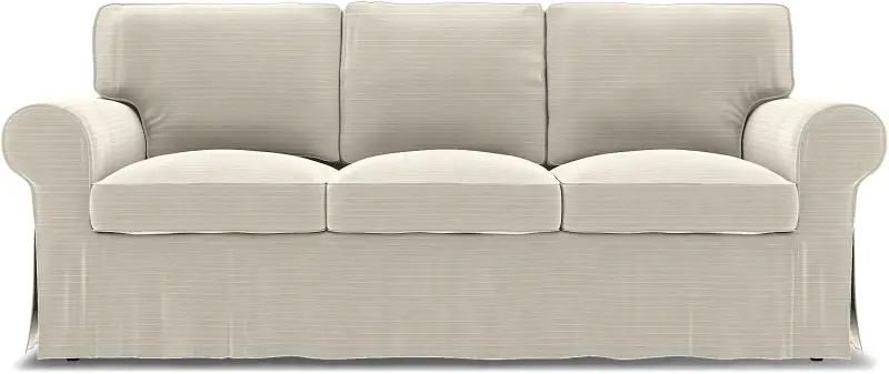This Ektorp cover comes with piping for a classic look that resembles the original IKEA Ektorp cover. It includes 7 pieces: 1 frame cover, 3 seat cushion covers and 3 back cushion covers. These covers can only be used on the Ektorp 3 seater sofa bed from IKEA. The cushion covers are closed with zippers and are reversible.