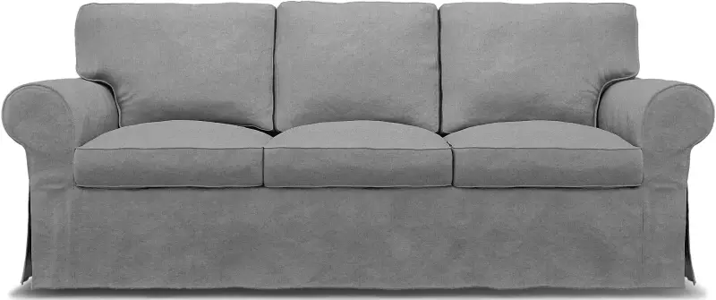 This Ektorp cover comes with piping for a classic look that resembles the original IKEA Ektorp cover. It includes 9 pieces: 1 frame cover, 3 seat cushion covers, 3 back cushion covers and 2 extra armrest covers. This cover can only be used on the Ektorp 3 seater sofa from IKEA. The cushion covers are closed with zippers and are reversible. Bemz Loose Fit covers are designed to hang looser than our Regular Fit and have a distinctive floor-length drape. Bemz covers are not suitable for the leather versions of this IKEA model.