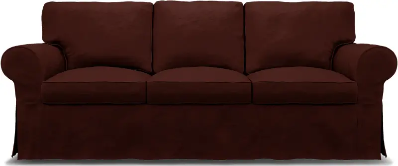 This Ektorp cover comes with piping for a classic look that resembles the original IKEA Ektorp cover. It includes 9 pieces: 1 frame cover, 3 seat cushion covers, 3 back cushion covers and 2 extra armrest covers. This cover can only be used on the Ektorp 3 seater sofa from IKEA. The cushion covers are closed with zippers and are reversible. Bemz Loose Fit covers are designed to hang looser than our Regular Fit and have a distinctive floor-length drape. Bemz covers are not suitable for the leather versions of this IKEA model.