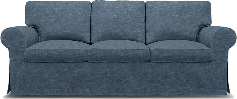 This Ektorp cover comes with piping for a classic look that resembles the original IKEA Ektorp cover. It includes 9 pieces: 1 frame cover, 3 seat cushion covers, 3 back cushion covers and 2 extra armrest covers. This cover can only be used on the Ektorp 3 seater sofa from IKEA. The cushion covers are closed with zippers and are reversible. Bemz Loose Fit covers are designed to hang looser than our Regular Fit and have a distinctive floor-length drape. Bemz covers are not suitable for the leather versions of this IKEA model.