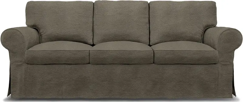 This Ektorp cover comes with piping for a classic look that resembles the original IKEA Ektorp cover. It includes 9 pieces: 1 frame cover, 3 seat cushion covers, 3 back cushion covers and 2 extra armrest covers. This cover can only be used on the Ektorp 3 seater sofa from IKEA. The cushion covers are closed with zippers and are reversible. Bemz Loose Fit covers are designed to hang looser than our Regular Fit and have a distinctive floor-length drape. Bemz covers are not suitable for the leather versions of this IKEA model.