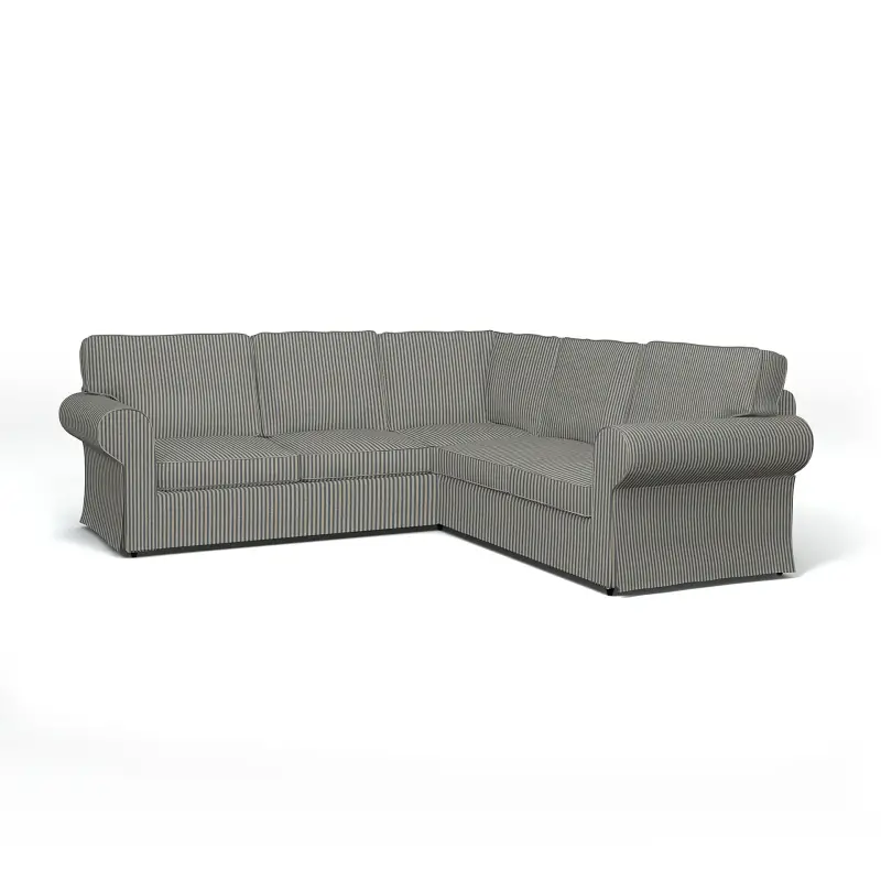 This Ektorp cover comes with piping for a classic look that resembles the original IKEA Ektorp cover. It includes twelve pieces: 1 frame cover, 5 seat cushion covers and 6 back cushion covers. It can be used on the Ektorp corner sofa as well as for the corner sofa bed from IKEA. The cushion covers are closed with zippers and are reversible.