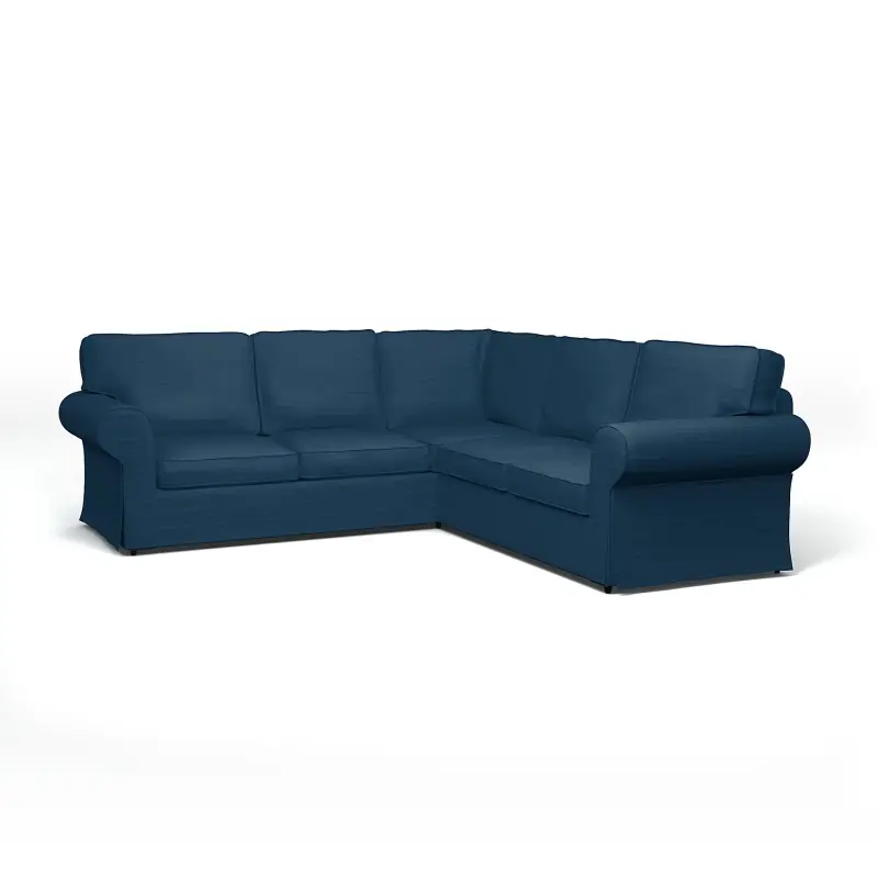 This Ektorp cover comes with piping for a classic look that resembles the original IKEA Ektorp cover. It includes twelve pieces: 1 frame cover, 5 seat cushion covers and 6 back cushion covers. It can be used on the Ektorp corner sofa as well as for the corner sofa bed from IKEA. The cushion covers are closed with zippers and are reversible.