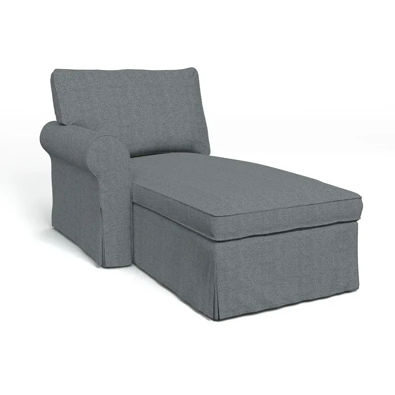 This Ektorp cover comes with piping for a classic look that resembles the original IKEA Ektorp cover. It includes 4 pieces: 1 frame cover, 1 armrest cover, 1 seat cushion cover and 1 back cushion cover. It can only be used on the IKEA Ektorp chaise longue with the armrest to the left (standing at the foot of the chaise). The cushion covers are closed with zippers and are reversible.