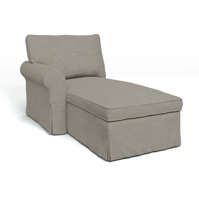 This Ektorp cover comes with piping for a classic look that resembles the original IKEA Ektorp cover. It includes 4 pieces: 1 frame cover, 1 armrest cover, 1 seat cushion cover and 1 back cushion cover. It can only be used on the IKEA Ektorp chaise longue with the armrest to the left (standing at the foot of the chaise). The cushion covers are closed with zippers and are reversible.