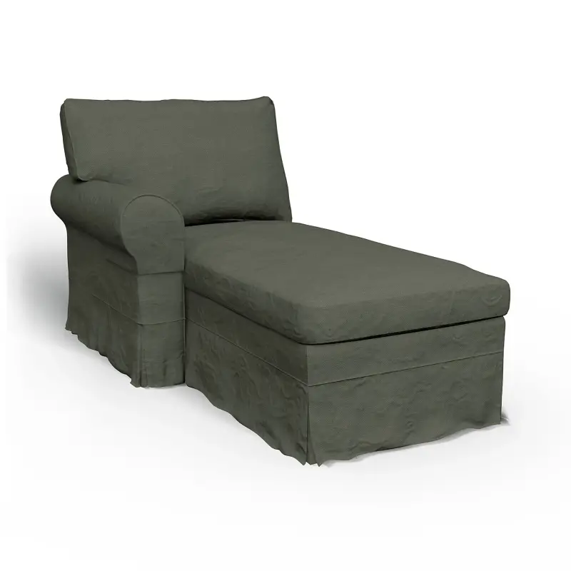 This cover includes 5 pieces: 1 frame cover, 1 armrest cover, 1 extra armrest cover, 1 seat cushion cover and 1 back cushion cover. These covers can only be used on the IKEA Ektorp chaise longue with the armrest to the left (seen from the short end). The cushion covers are closed with zippers and are reversible. Bemz Loose Fit covers are designed to hang looser than our Regular Fit and have a distinctive floor-length drape.