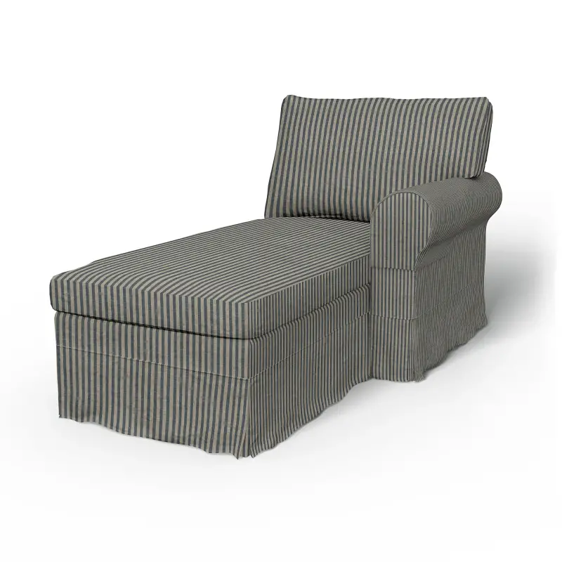 Ikea - Ektorp Chaise With Right Armrest Cover Dark Blue Natural Linen - Bemz